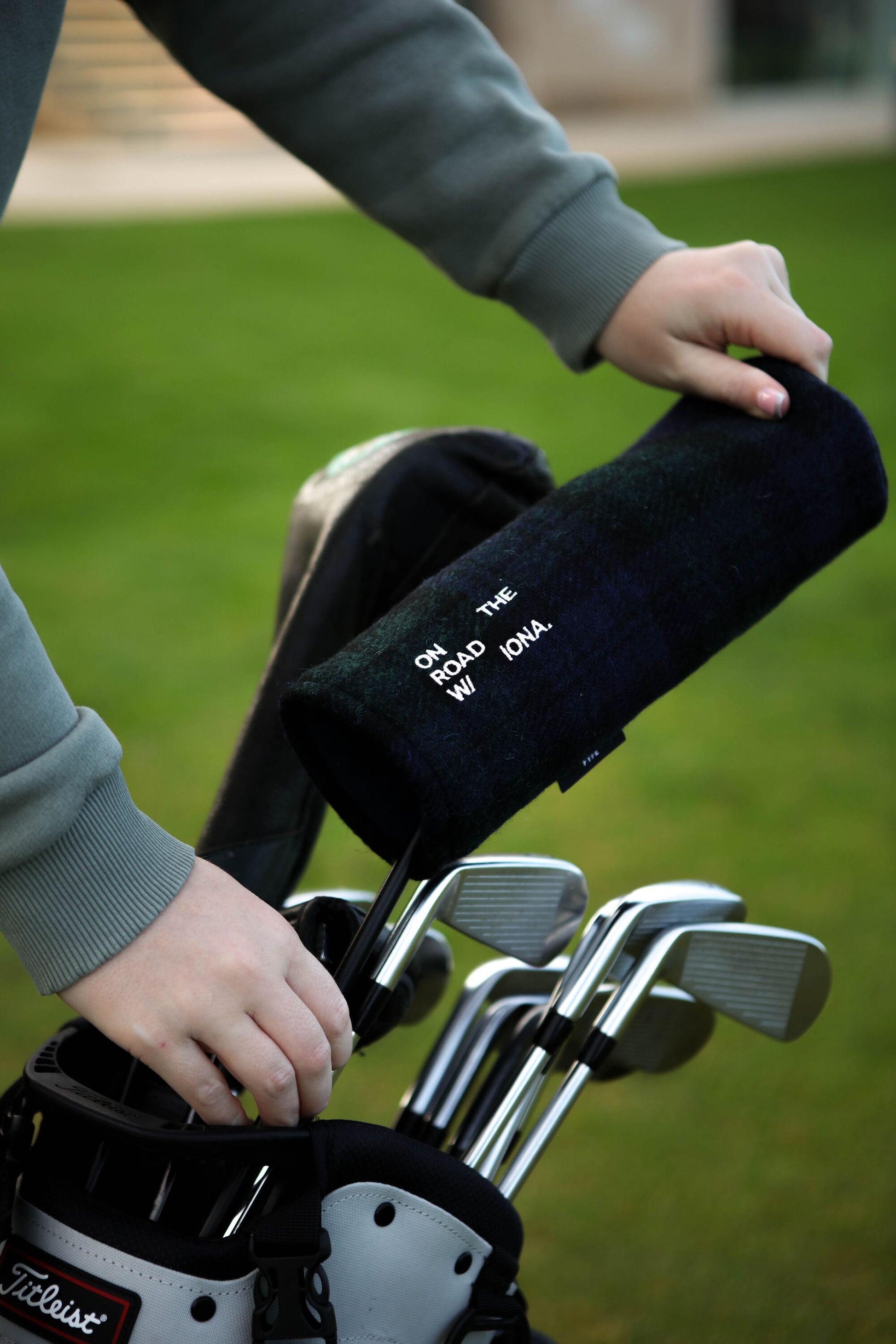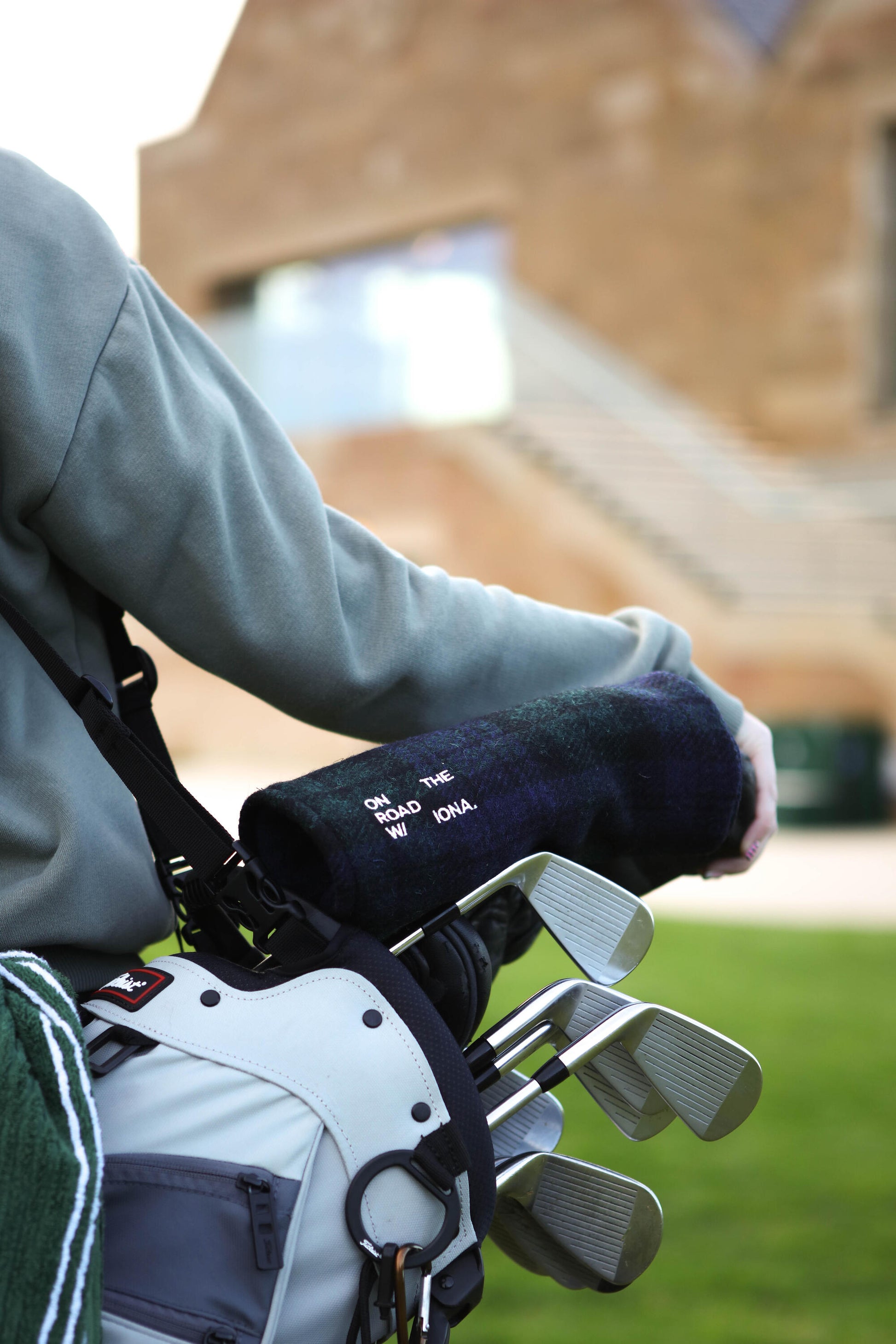Handwoven in Scotland from authentic Harris Tweed and embroidered with the On The Road with Iona logo. The premium wool is naturally water-repellent and made to withstand the elements, while a plush fleece lining cushions your club and a secure elastic grip keeps it firmly in place throughout your round.